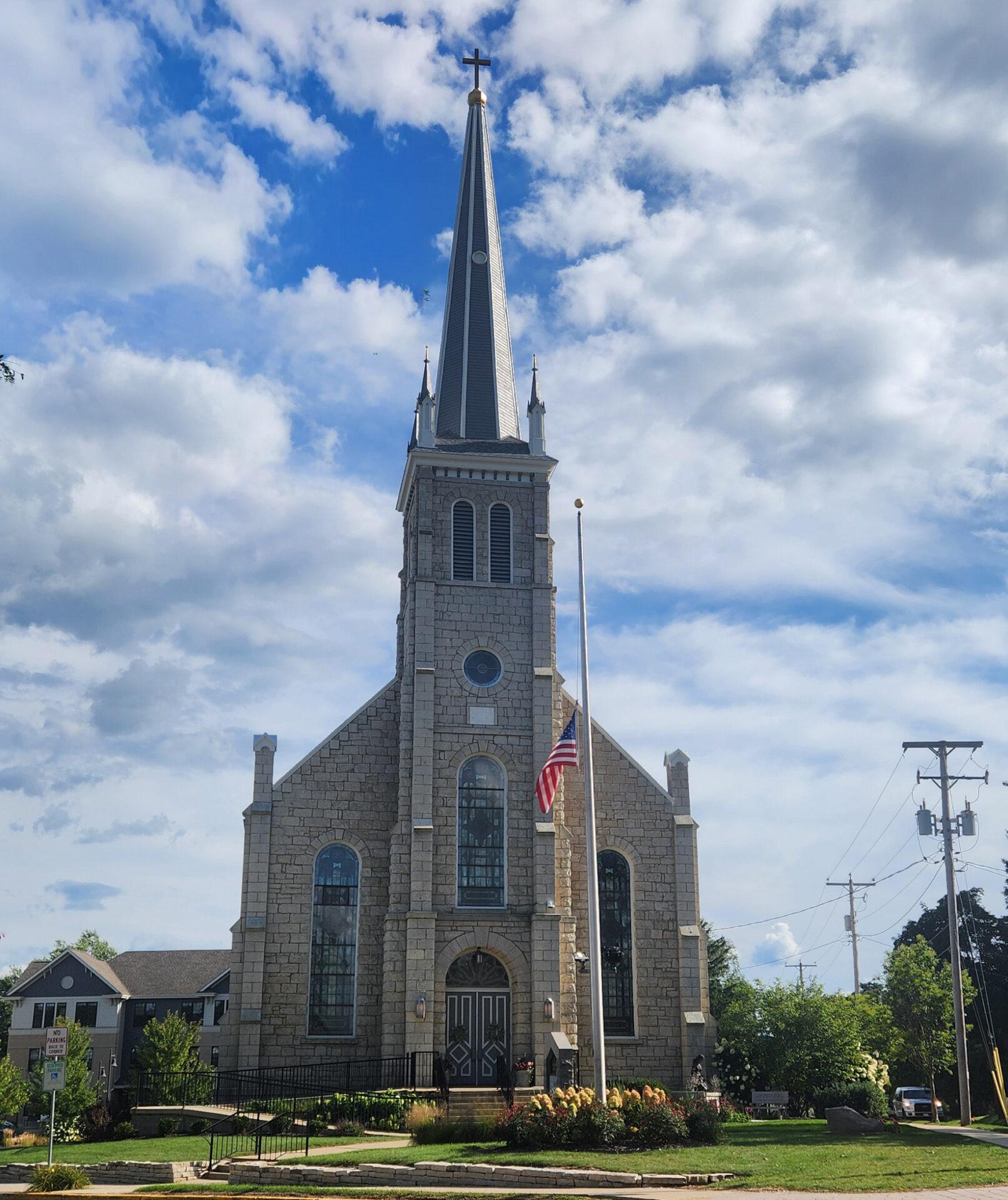 Directions: From I-43, go west on State Highway 60 for 4 miles to Covered Bridge Road. Turn right (north) for 1/4 mile to the church.